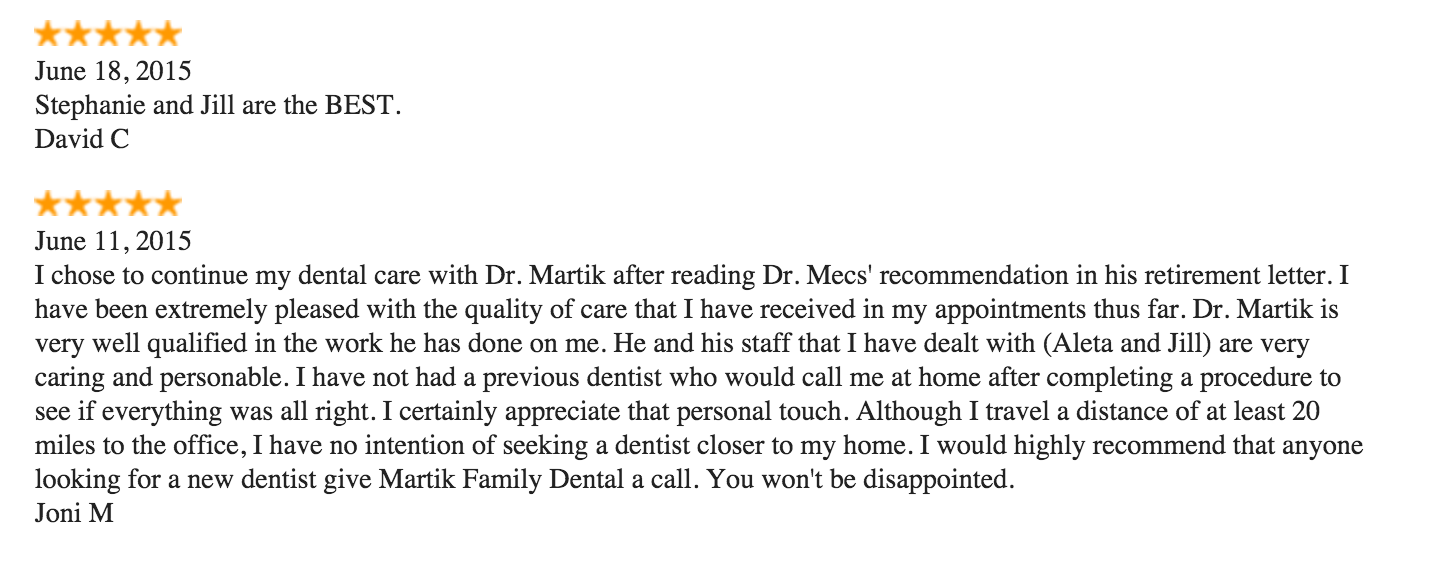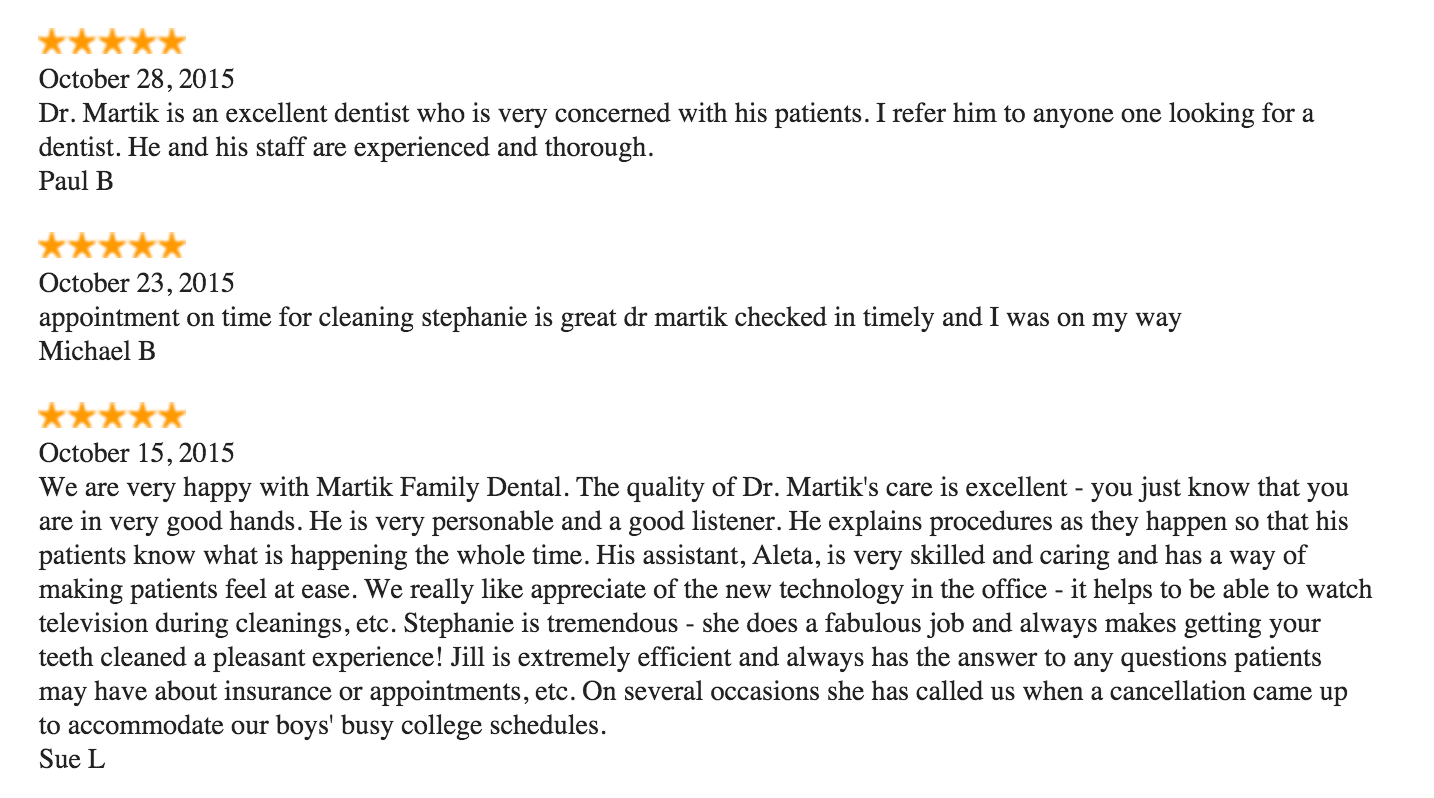 Our Pittsburgh dental team always goes out of their way to treat you with kindness and respect because we value the trust you place in our ability and in us. We know that this makes a difference in the experience our patients have with us, and after reading some of the comments below, we’re sure you will agree!